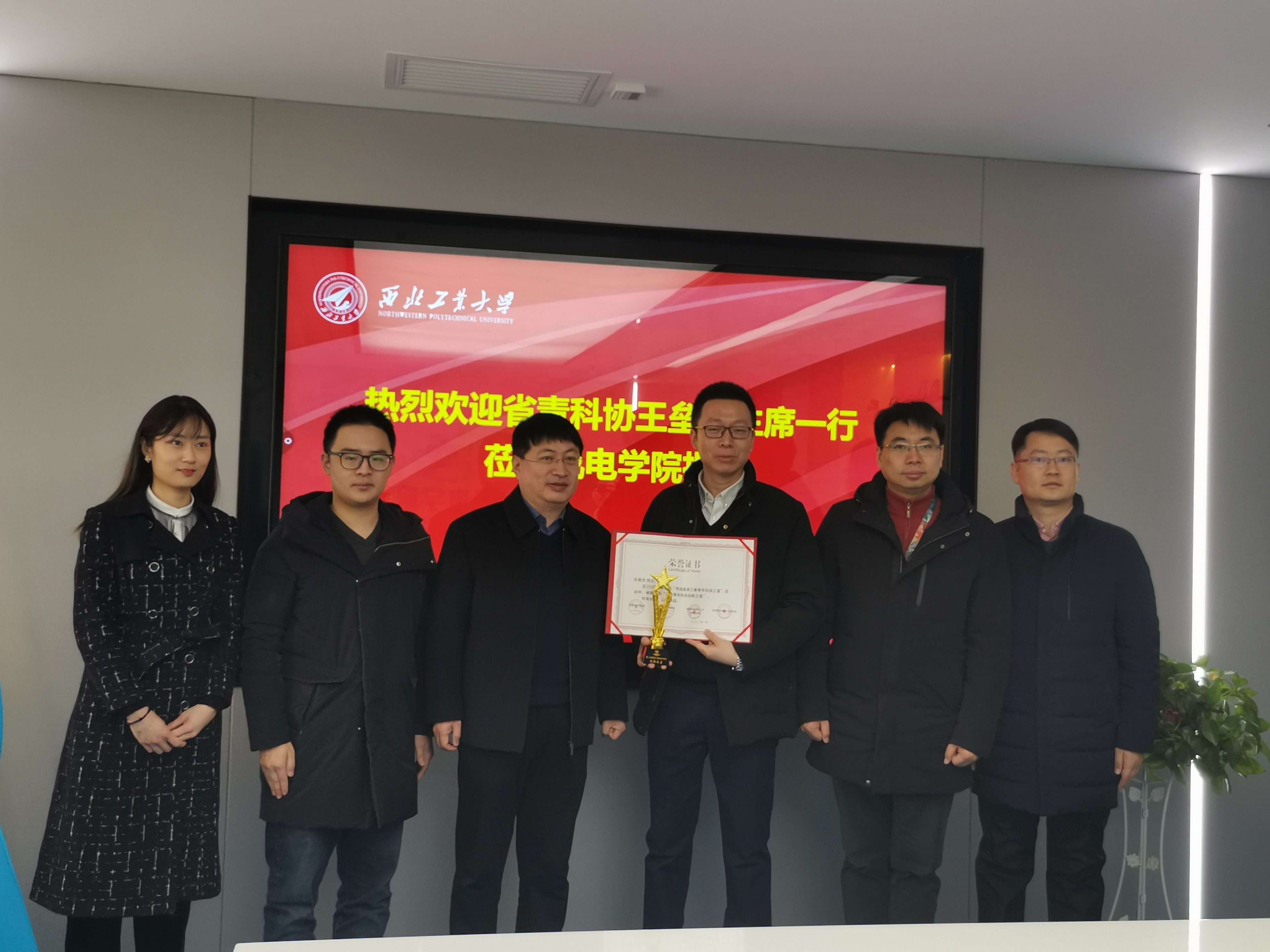2月4日上午,“三秦青年科技创新之星”颁奖仪式在航空楼B416会议室举行,机电学院许英杰教授获颁“三秦青年科技创新之星”荣誉证书及奖杯。陕西省青年科技工作者协会副主席、西安市儿童医院副院长王垒,航天六院11所规划发展处副处长陈博、西安电子科技大学陈穆林,机电学院院长朱继宏、党委副书记佘磊磊参加颁奖仪式。仪式由陈博主持。