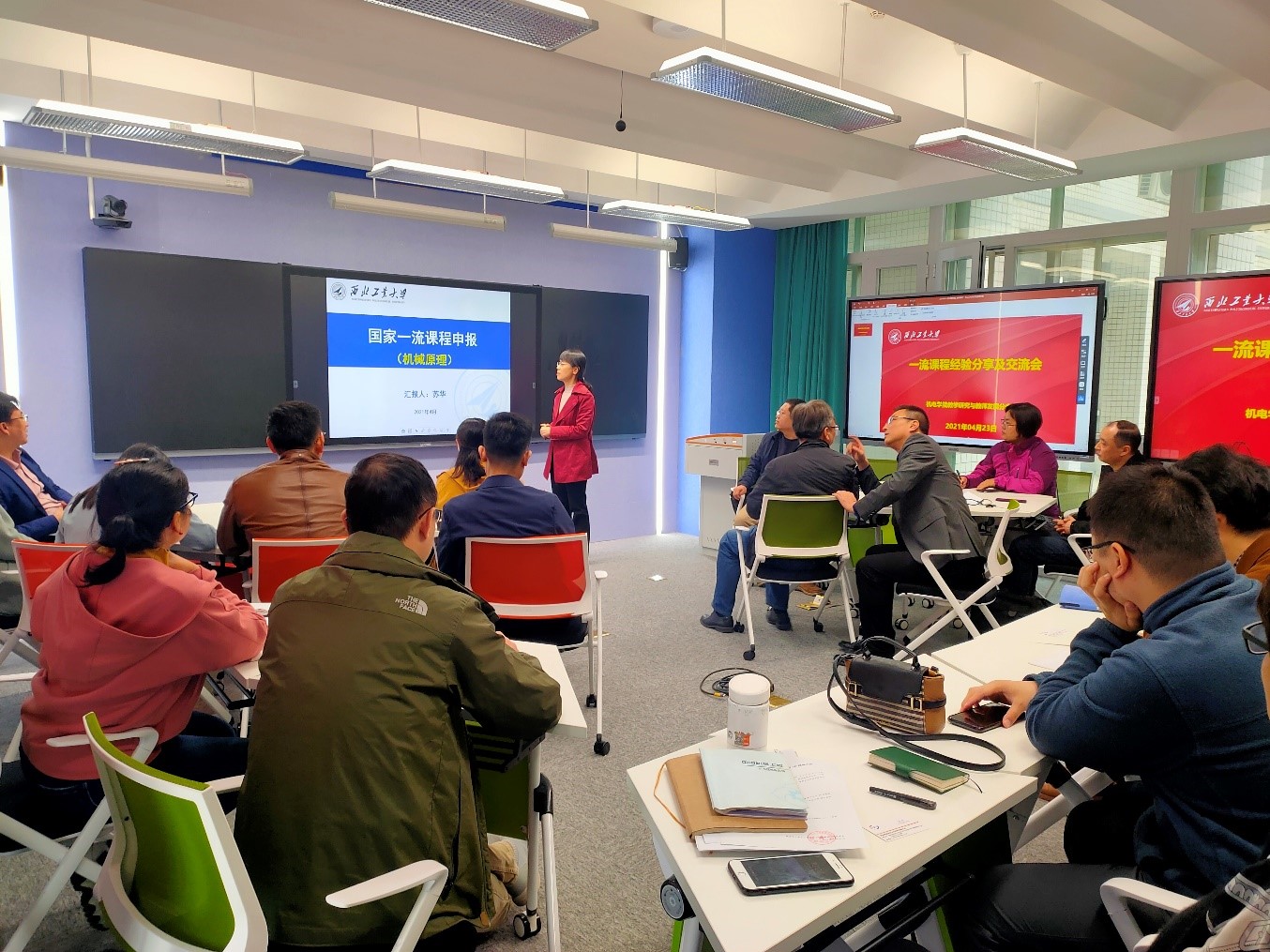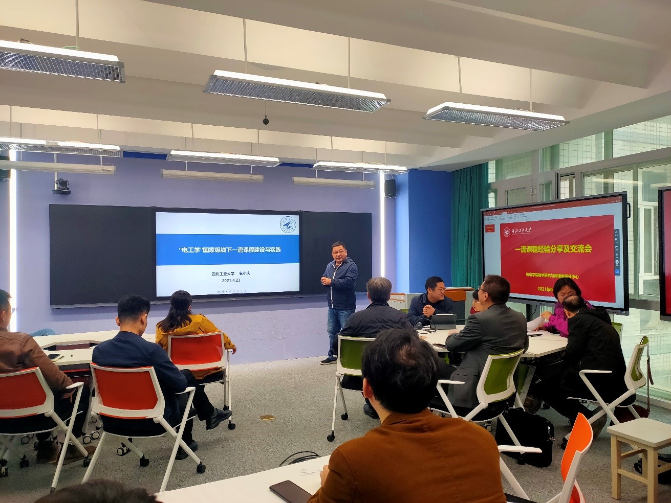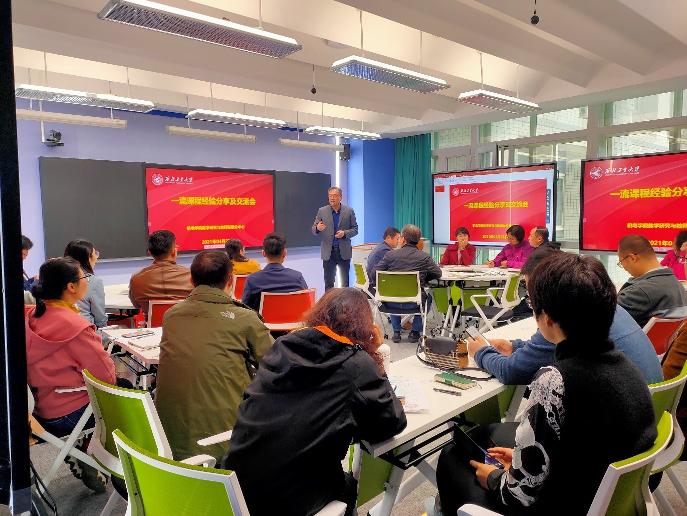 2021年04月23日上午,机电学院教学研究与教师发展分中心在机电学院“智慧教室”组织开展了“一流课程经验分享及交流会”活动。会议邀请了2020年获批的四门国家级一流课程(机械原理、机械制造基础、电工与电子技术、机械制图)团队进行经验传授及交流。共有30余名教师参加了本次活动,包括参加一流课程申报的老师、校一流课程负责人、近两年新开课程的负责人、各专业负责人、以及机电学院教学研究与教师发展分中心全体成员。会议由机电学院教学研究与教师发展分中心主任宁方立教授主持,机电学院副院长常智勇教授作了开场发言。