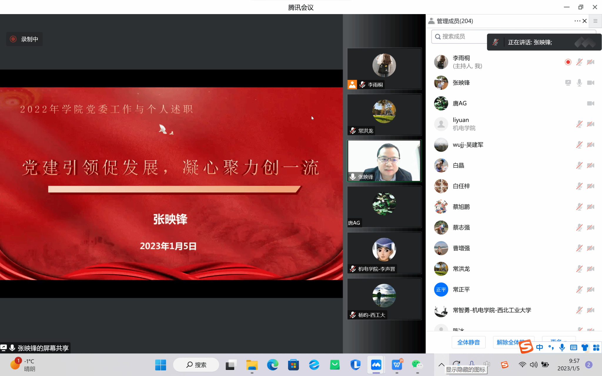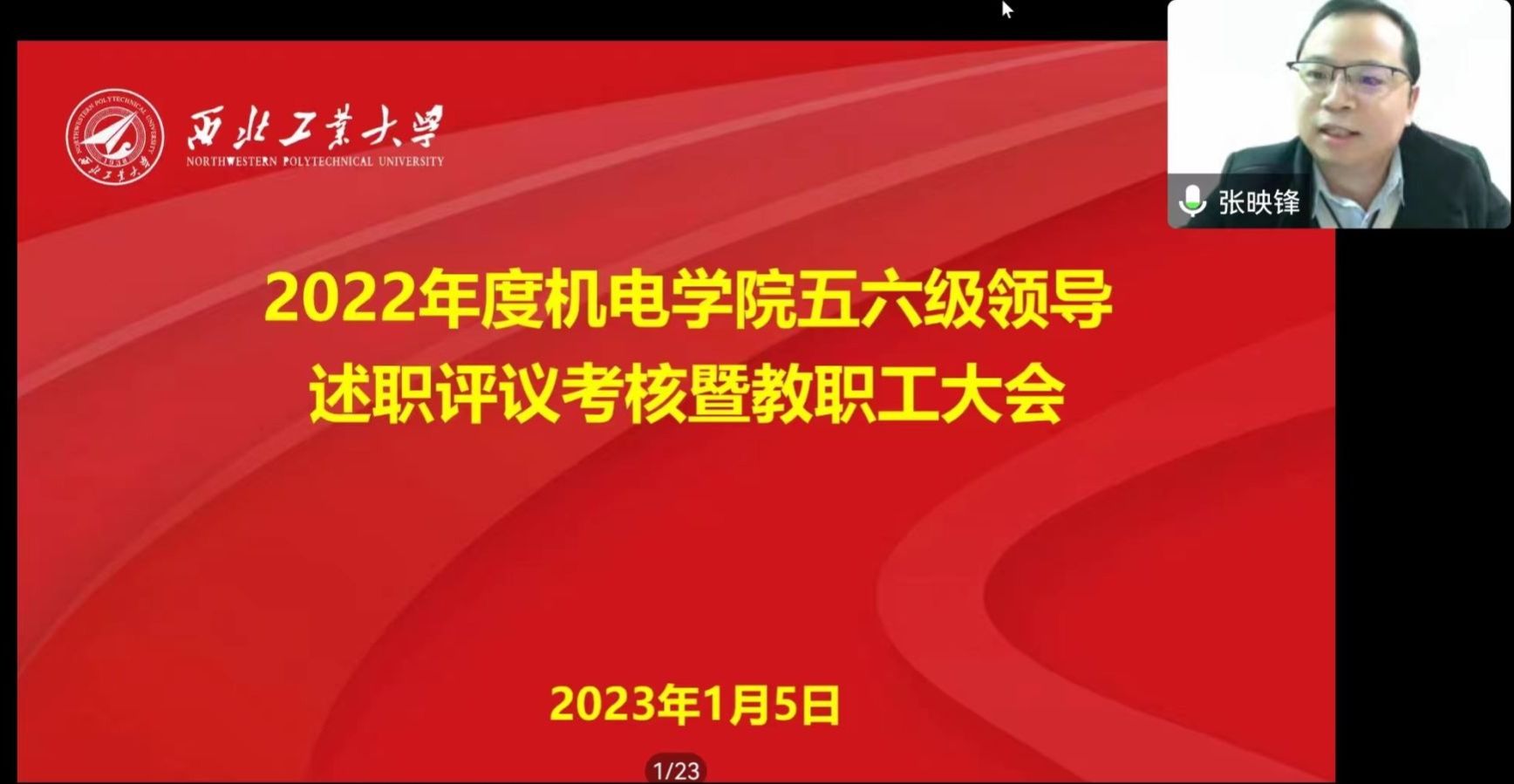机电学院于1月5日召开了线上2022年度五、六级领导人员述职测评大会,院领导、全体教职工等参加了会议,会议由党委书记张映锋主持。