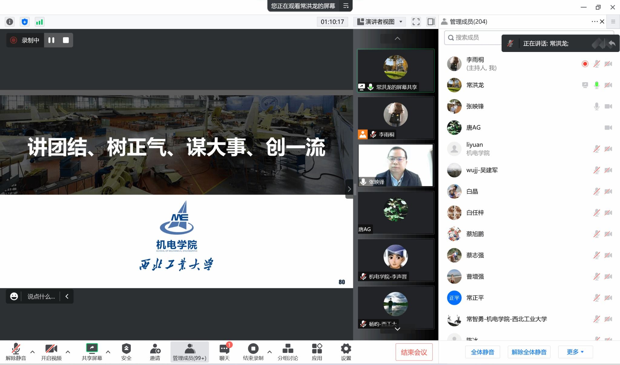 首先,院长常洪龙从师资队伍建设、学科建设、本科生培养、研究生培养、科学研究与社会服务、国际合作等方面对学院工作进行总结并做了年度财务收支报告,他表示,一年来全院师生统一思想,齐心协力,担当奋进,在落实立德树人根本任务,推进世界一流机电学院建设上实现了新突破。