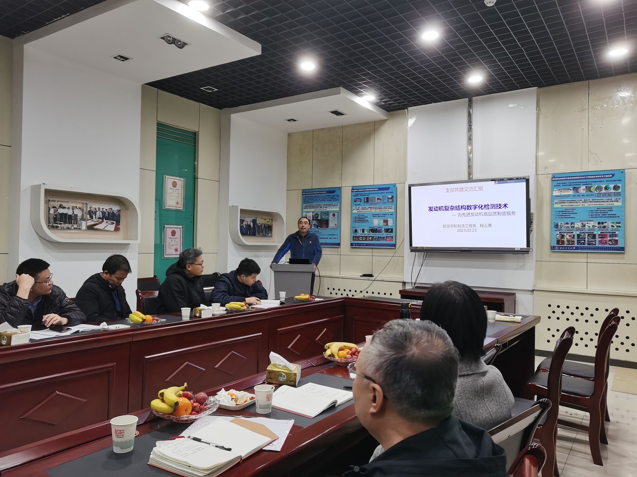 为深入学习贯彻习近平新时代中国特色社会主义思想和党的二十大精神,不断强化党建与业务融合共进,2023年3月23日,机电学院航空宇航制造工程系第一党支部邀请了“大国工匠”何小虎所在的西安航天发动机有限公司35车间党支部来校交流,开展了支部共建活动。会议由支部书记王明微同志主持,党员、入党积极分子等共20余人参加。