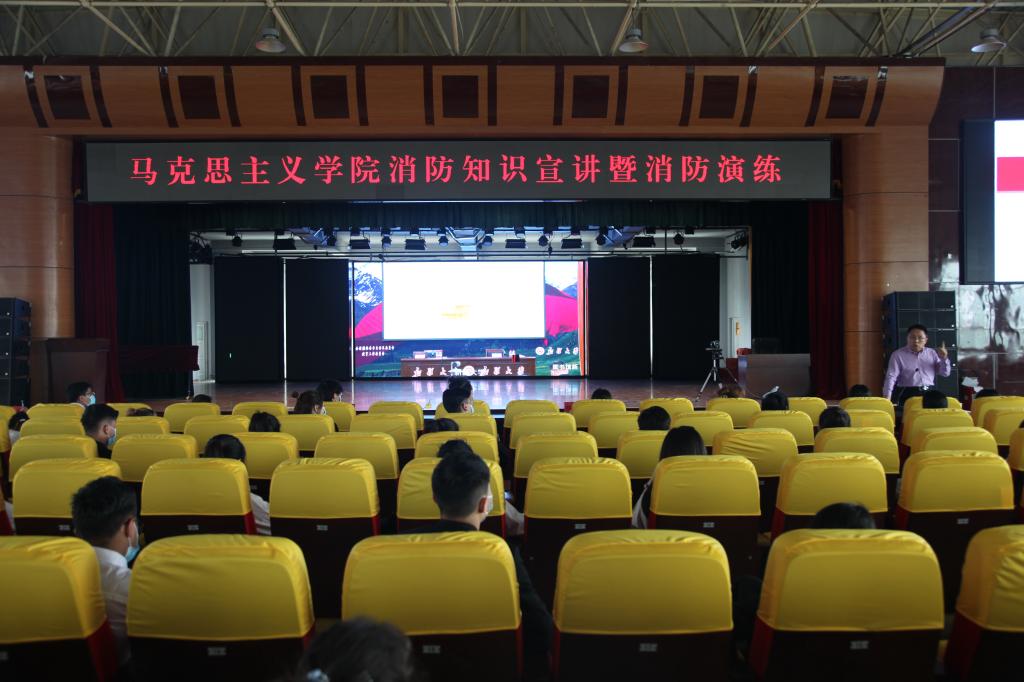 5月12日,在全国第12个防灾减灾日来临之际,为了提高师生安全意识,培养自我防范能力和对紧急情况下的自救能力,根据学校党委的要求,马克思主义学院进行了精心策划,发挥示范带头作用,在综合楼四楼礼堂开展了一次别开生面的消防讲座暨应急演练,学院全体教职工、“青年马克思主义者培训班”学员以及各学院学生代表400人参加活动,学院党总支副书记、院长杨柯主持了活动。