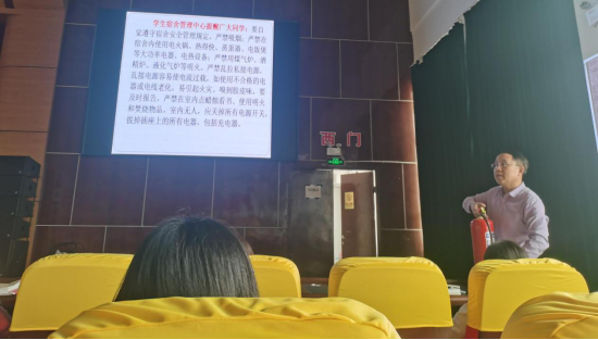 讲座伊始首先播放了两段2008年汶川大地震的视频,还原了地震时发生的一幕幕惨痛过程和感人场景,把所有人的记忆拉回到了2008年的那个夏天。一场8.0级地震撼动神州,地动山摇,残垣断壁;万物灰寂,生死离别。人们为在汶川地震中逝去的同胞哭泣,也为抗震救灾凝聚起的伟大精神感动。那一瞬间,深深地刻在了中国人民心中,一刻就是13年,以及永久。安全生产是一切工作的基础,没有强烈的安全意识,不能定期排除我们生活和工作中的安全隐患,就也没有全社会的安全稳定。随后,展示了成都大学、东北大学、上海商学院宿舍楼起火事件等18个高校发生的真实火灾典型案例,无一不在警示着我们灾难就在身边。杨柯院长向师生们示范了灭火器的使用方法,通过例举“5·12”汶川大地震四川绵阳安县桑枣中学2000多名师生依靠平时的应急演练,在地震中仅耗时1分36秒就全部冲出教室在操场上整齐列队,无一人伤亡的典型案例,讲解了在发生灾难时的正确逃生方式并进行了示范,提醒大家必须掌握科学的防灾和自救方法。