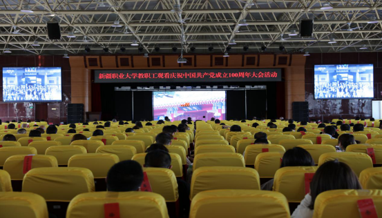 (我校全体教职工观看庆祝中国共产党成立100周年大会直播现场)