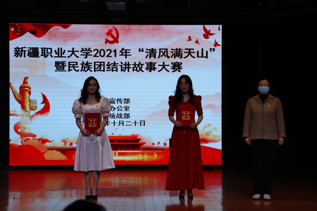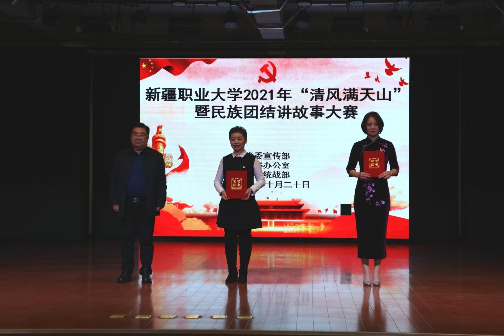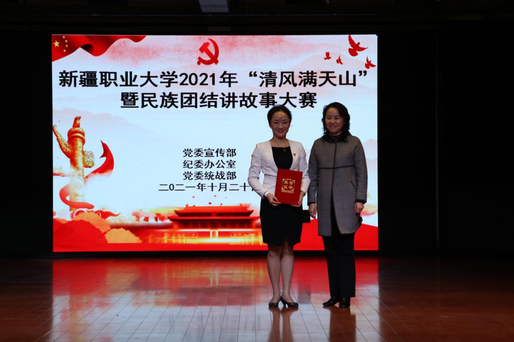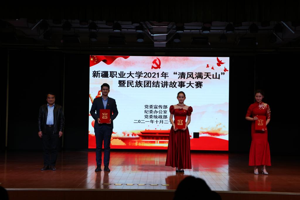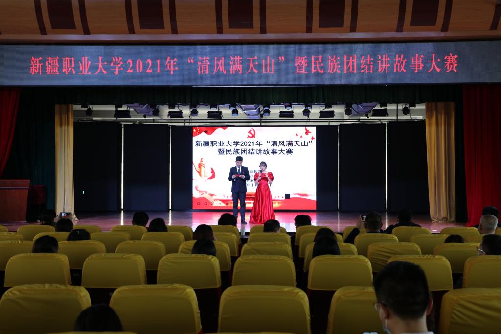 为进一步推动我校党史学习教育,弘扬廉政文化,用先锋模范人物的典型事迹凝聚团结力量,2021年10月20日,我校在综合楼礼堂举行新疆职业大学2021年“清风满天山”暨民族团结讲故事大赛,来自各学院的8名师生参赛。校党委副书记罗华,校党委常委、副校长那生巴图,校党委常委、宣传部部长周全新莅临活动,张豫、陈军、冯勇、张文弢、李子龙五位老师担任评委,各学院师生代表300余人在现场观看了比赛。