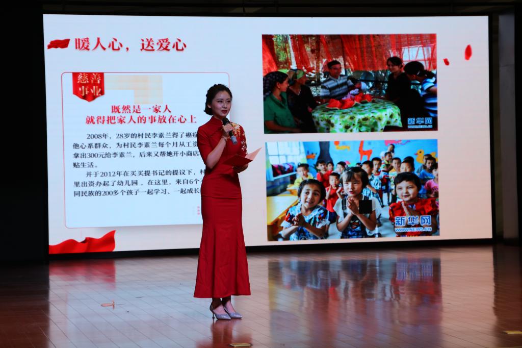 (商学院哈丽扎·也尔玻松同学讲述《大爱不分民族,团结凝聚力量》)