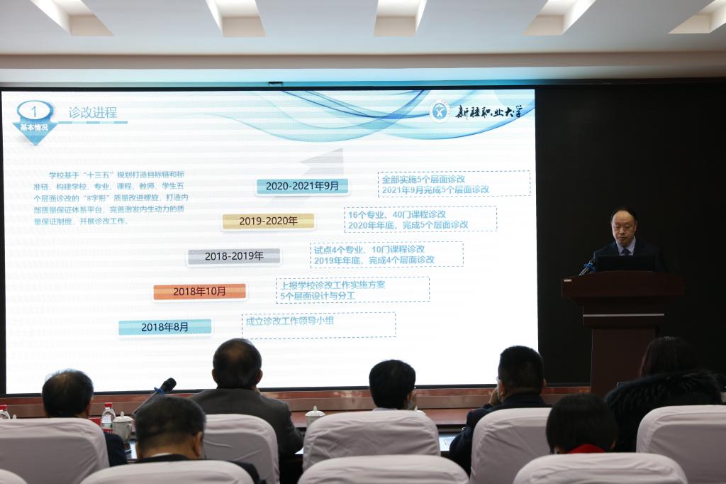 14日上午,诊改工作汇报会在5号楼学术报告厅举行,全体在家校领导、中层干部、专业及课程负责人、教师及学生代表参加了汇报会,汇报会由校党委副书记、校长阿布都热西提·努尔登主持。