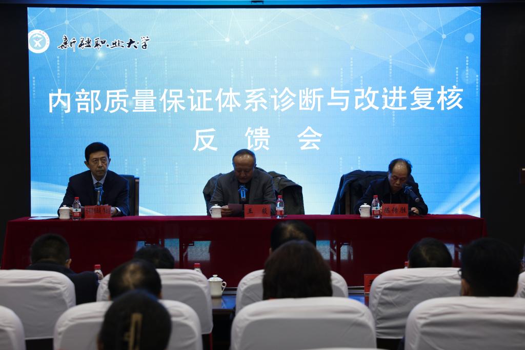 16日上午召开反馈会。反馈会由专家组副组长、江西应用技术职业学院党委委员、副院长陈传胜主持。专家组组长王毅代表专家组宣读复核总体反馈意见。他指出,学校领导班子高度重视,制定了学校内部质量保证体系诊断与改进实施方案,建立了学校发展规划体系。发展目标基本传递至专业、课程、教师、学生层面,明确了诊改主体,具体工作落实到人,五个层面“8字形”质量改进螺旋初步建立并正常运行,对智能化校园建设进行了顶层设计和总体布局,建设工作稳步推进。学校建立了内部质量保证体系运行制度和相关考核激励办法,加大了培训宣传力度,质量意识逐步增强,师生员工获得感和满意度不断提升。同时,提出了两链打造、螺旋建立与运行、引擎驱动、平台建设等方面存在的不足及建议。