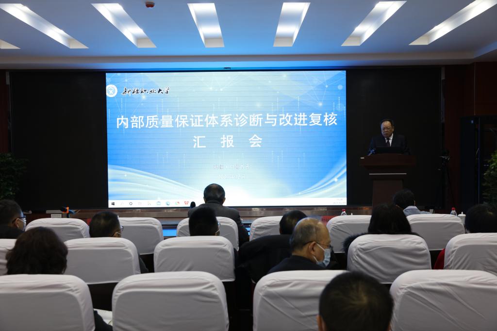 专家组组长王毅讲话并作现场复核工作安排。他说,复核工作的目的是督促、帮助学校有效落实内部质量保证体系建设与运行实施方案,完善内部质量诊改体系和运行机制。专家组将按照相关文件精神,以学校的实施方案为主要依据,针对学校实际,做出结论、提出进一步完善诊改工作方案、提高诊改工作质量的建议,通过复核,让学校高质量发展的目标更加坚定,在高水平发展的道路上取得更大成绩。
