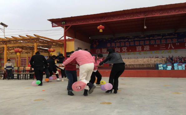 联谊活动中还穿插了抢座位、踩气球等互动小游戏,气氛愈加热烈,越来越多的村民们被吸引着前来观看。