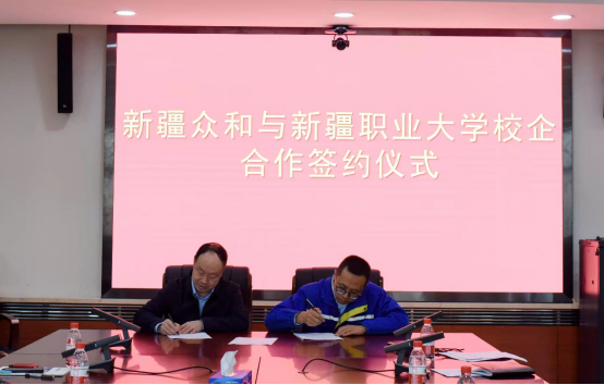 (图1:校党委常委、副校长徐耀宗和新疆众合股份有限公司总经理薛冰签订订单班合作协议 )