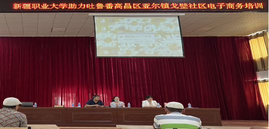 根据自治区统一安排,学校大力加强示范村建设。7月6日,学校选派商学院副院长贾蕾、电子商务专业专任教师丁莉、亚克蒲·亚森赴吐鲁番高昌区亚尔镇戈壁社区、新城东门社区进行电子商务实地调研培训。