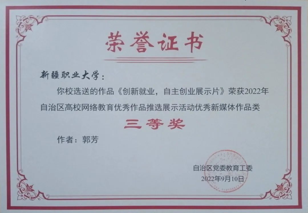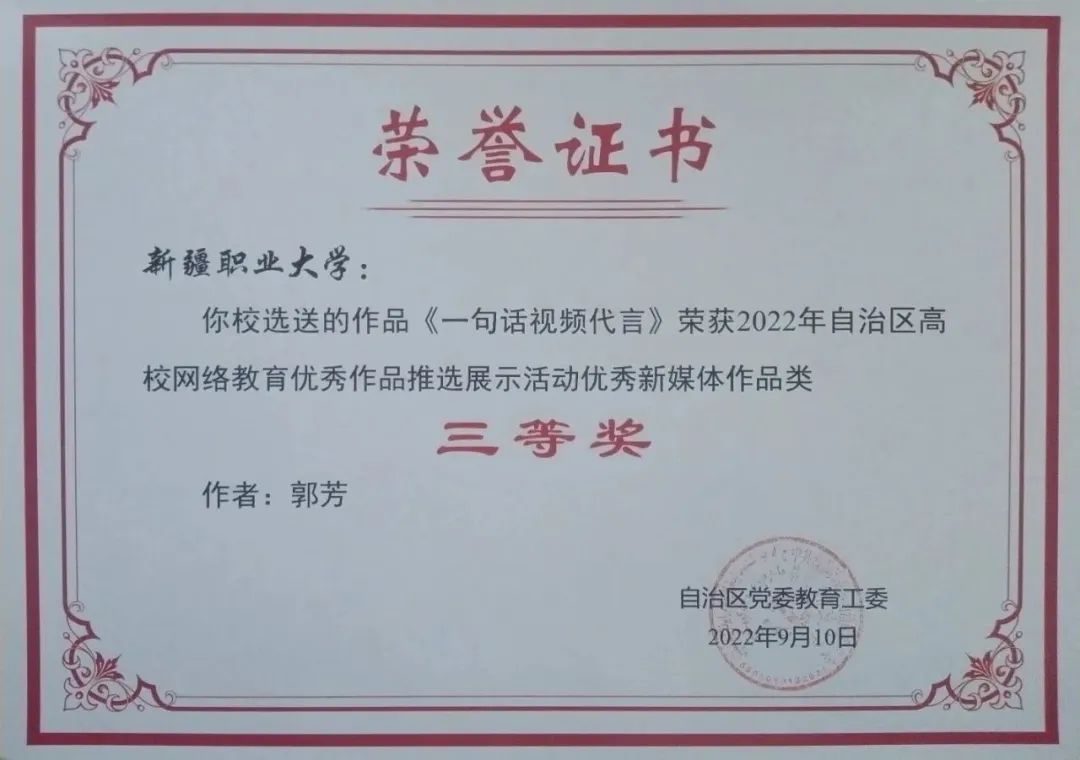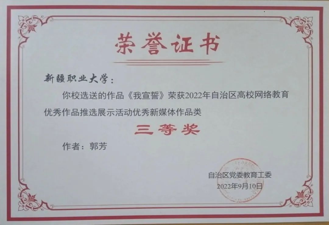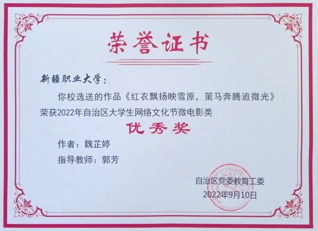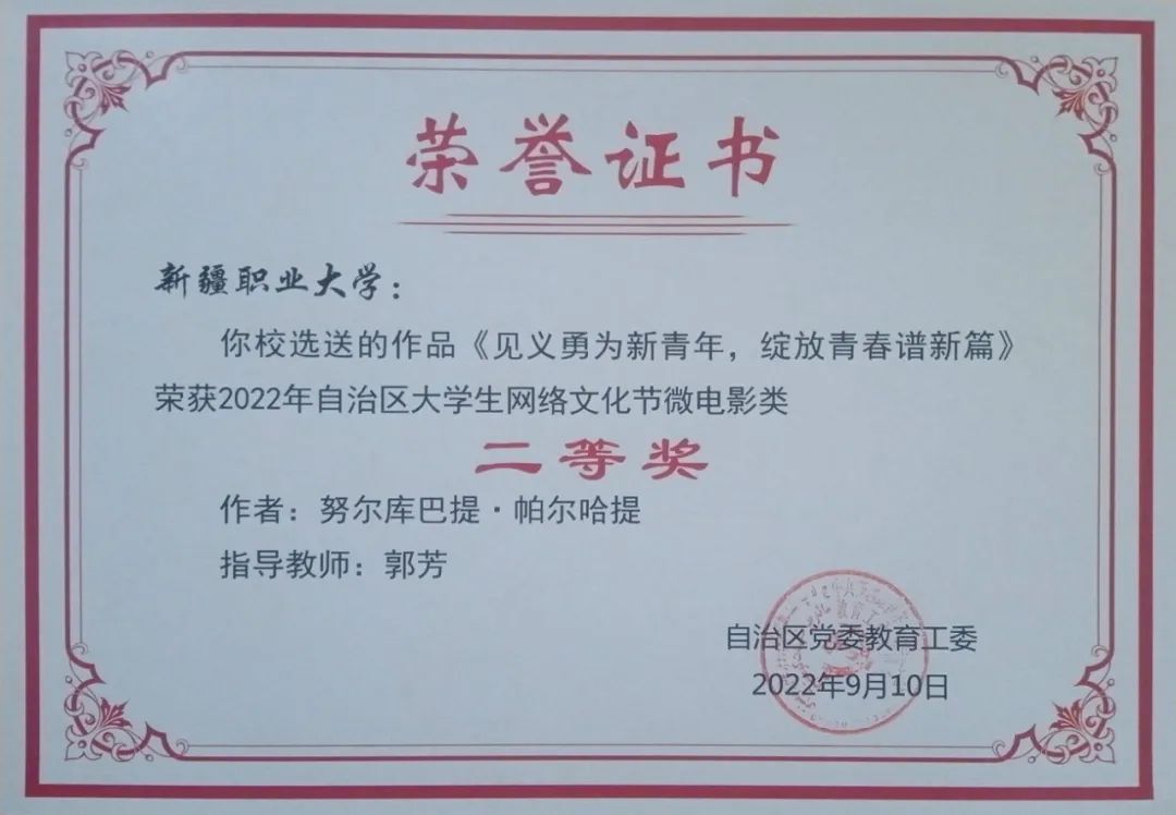 为深入学习贯彻习近平新时代中国特色社会主义思想,加大优秀网络文化产品供给力度,推进网络文明建设,自治区党委教育工委、自治区党委网信办举办了以“争做校园好网民,凝聚网络正能量,青春献礼二十大”为主题的2022自治区大学生网络文化节和自治区高校网络教育优秀作品推选展示活动。