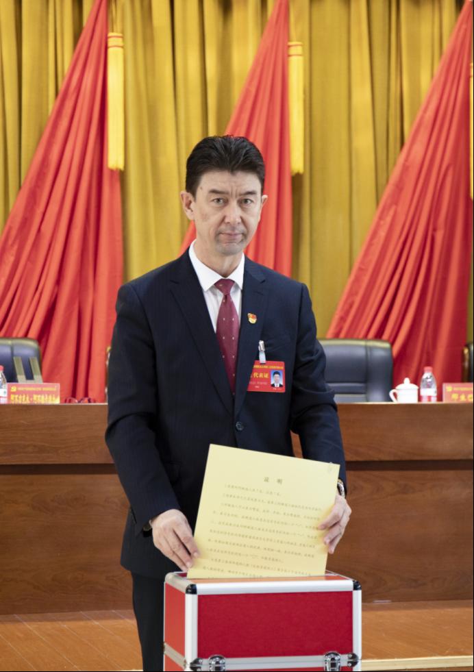 (阿不力克木·阿不德卡德尔同志作为党代会代表投下庄严一票)