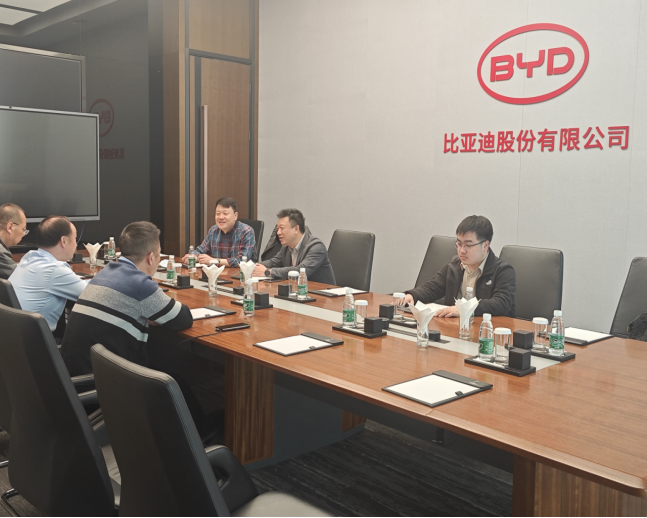 参观结束后双方进行了座谈,会议由比亚迪汽车销售有限公司售后培训部经理褚小欣主持。双方分别介绍了各自情况和发展前景,并就合作的具体事宜进行友好沟通洽谈。会上,徐耀宗副校长对比亚迪公司在校企合作方面的支持和帮助表示感谢,特别是在申报新能源汽车专业等方面给予了大力帮助。同时,徐耀宗副校长也表达了对深入加强校企合作方面的愿望,希望能在新能源汽车人才培养、1+X、培训、学生实习就业等方面加强交流与合作。