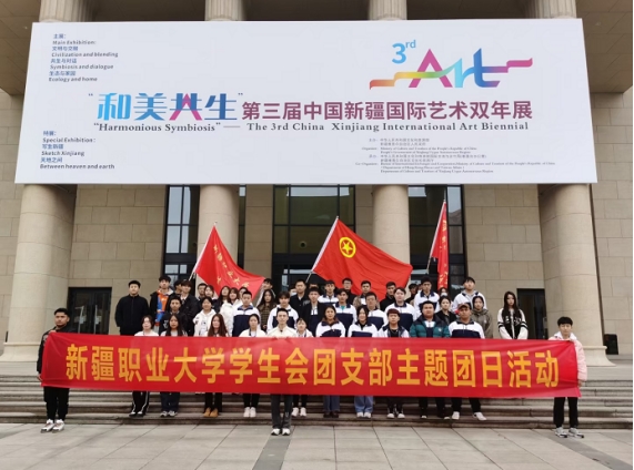 为进一步学习贯彻落实党的二十大精神,弘扬中华美育精神,丰富学生文化生活,提升学生艺术鉴赏力和艺术修养,3月14日,共青团新疆职业大学委员会组织师生前往新疆美术馆参加了“和美对话”第三届新疆国际艺术双年展的观展与艺术创作实践活动。312名团员青年参加了此次活动。