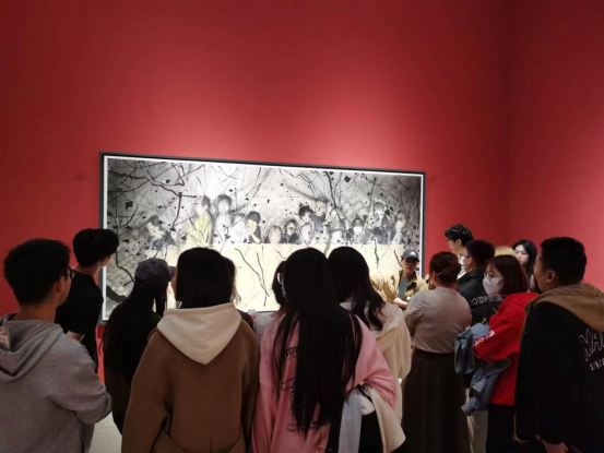 本次参观活动由校团委组织。同学们有序走进展馆,丰富的主题带来了一场精彩的视觉盛宴,“文明与交融”、“共生与对话”、“生态与家园”三大板块以及特展使同学们充分感受了新疆多元艺术文化的魅力。首先吸引住视线的是“写生新疆”展区,充满新疆本土气息的油画以及国画作品吸引大家驻足观看。随后同学们迈入“中国当代水墨的传统与再现”展区,传统手法和现代水墨手法的完美结合打开了同学们全新创作灵感的大门。同学们认真细致地观看每一幅画作,深深被艺术作品的魅力所折服,连连称赞画作之美,对大师们的敬佩之情油然而生。