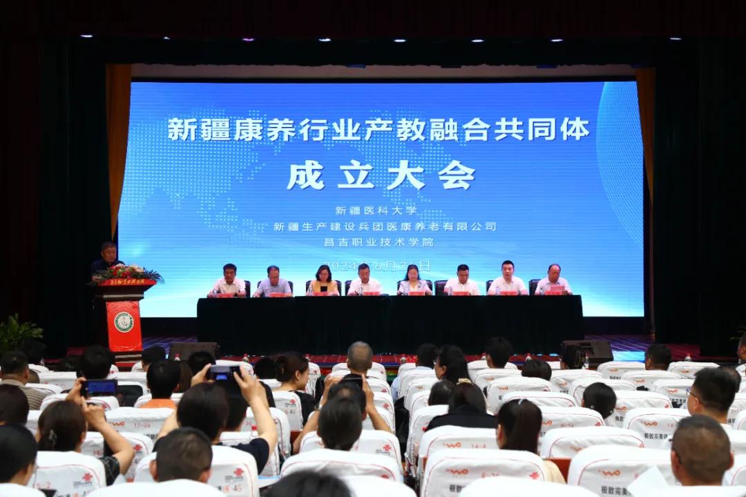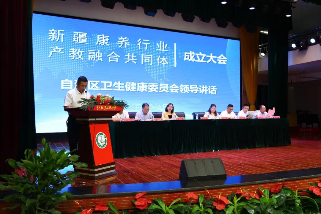 会议开始,昌吉职业技术学院党委书记梁军、新疆医科大学副校长刘涛、新疆生产建设兵团医康养老有限公司总经理雍宁分别致辞。随后自治区卫生健康委员会老龄健康处处长、一级调研员党振江讲话并宣布共同体正式启动。