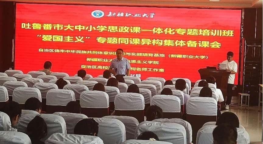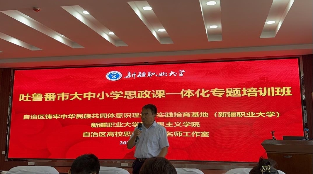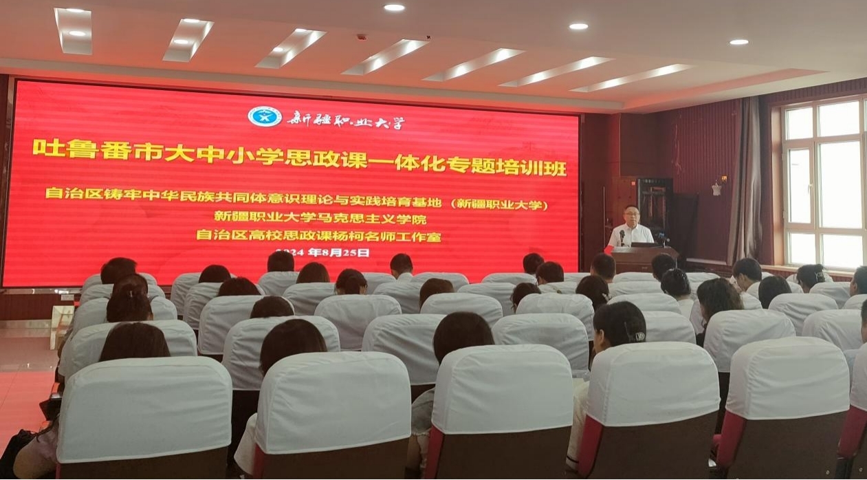 为认真学习贯彻党的二十届三中全会精神,发挥大中小学思政课一体化建设牵头校作用,经会商吐鲁番市委教育工委、教育局,8月24-28日,自治区教育系统铸牢中华民族共同体意识理论与实践培育基地(新疆职业大学)、我校马克思主义学院、自治区高校思政课杨柯名师工作室举办了吐鲁番市大中小学思政课一体化专题培训班,来自吐鲁番市20位思政课教师代表和我校马克思主义学院38位思政课教师参加了培训。我校马克思主义学院党总支书记、副院长杨柯主持培训。