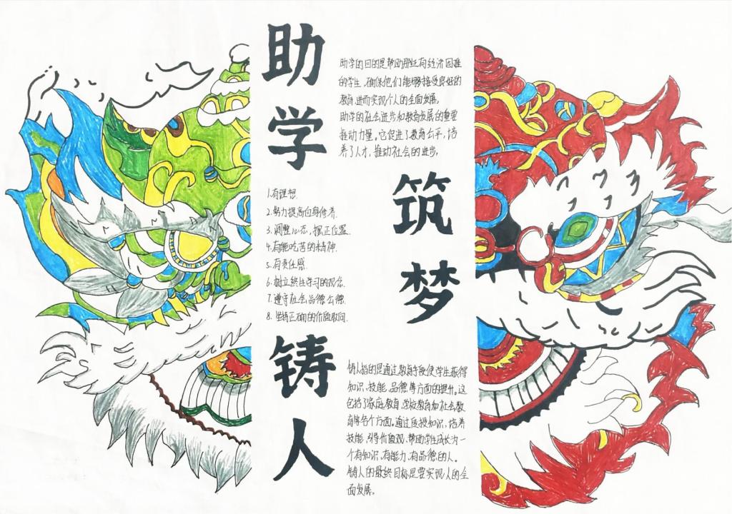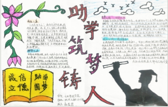 活动自12月10日启动,至12月31日截止,共收到来自各个年级、专业的手抄报作品48份。从收到的作品来看,同学们都展现出了极高的创作热情和艺术才华。作品内容丰富多样,不仅涵盖了诚信的重要性、立德的内涵、助学政策的解读等主题,还融入了许多个人的感悟与成长故事,体现了同学们对“诚信立德 助学圆梦”这一主题的深刻理解。