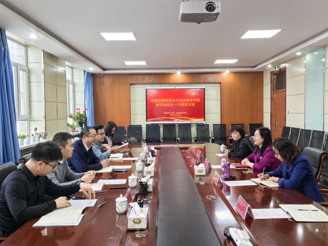 座谈伊始,继续教育学院直属党支部书记连卫钰对新疆师范大学一行的到来表示热烈欢迎,详细介绍了我校及继续教育学院的基本情况、高等学历继续教育和社会培训工作开展情况等。新疆师范大学继续教育学院徐宇生院长分享了在学历继续教育规范化建设、培训体系完善等方面的经验。双方就培训项目开发、师资队伍建设、招生宣传等问题展开深入交流,在面向职业教育发展需求、实现职普融通、优势互补方面,初步达成了几个合作意向。