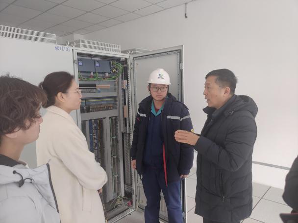 在控制机柜间,技术人员现场介绍了企业车间的PLC(可编程逻辑控制器)控制系统的网络架构、冗余系统设计及故障排除等相关内容。调研组与企业在PLC技术与工业互联网、人工智能等新兴技术融合应用进行了深入交流。