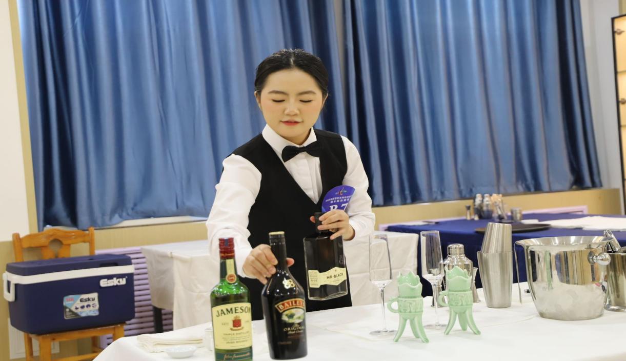 (旅游学院参赛选手袁蕊、齐盛芸同学荣获酒水服务赛项一等奖)