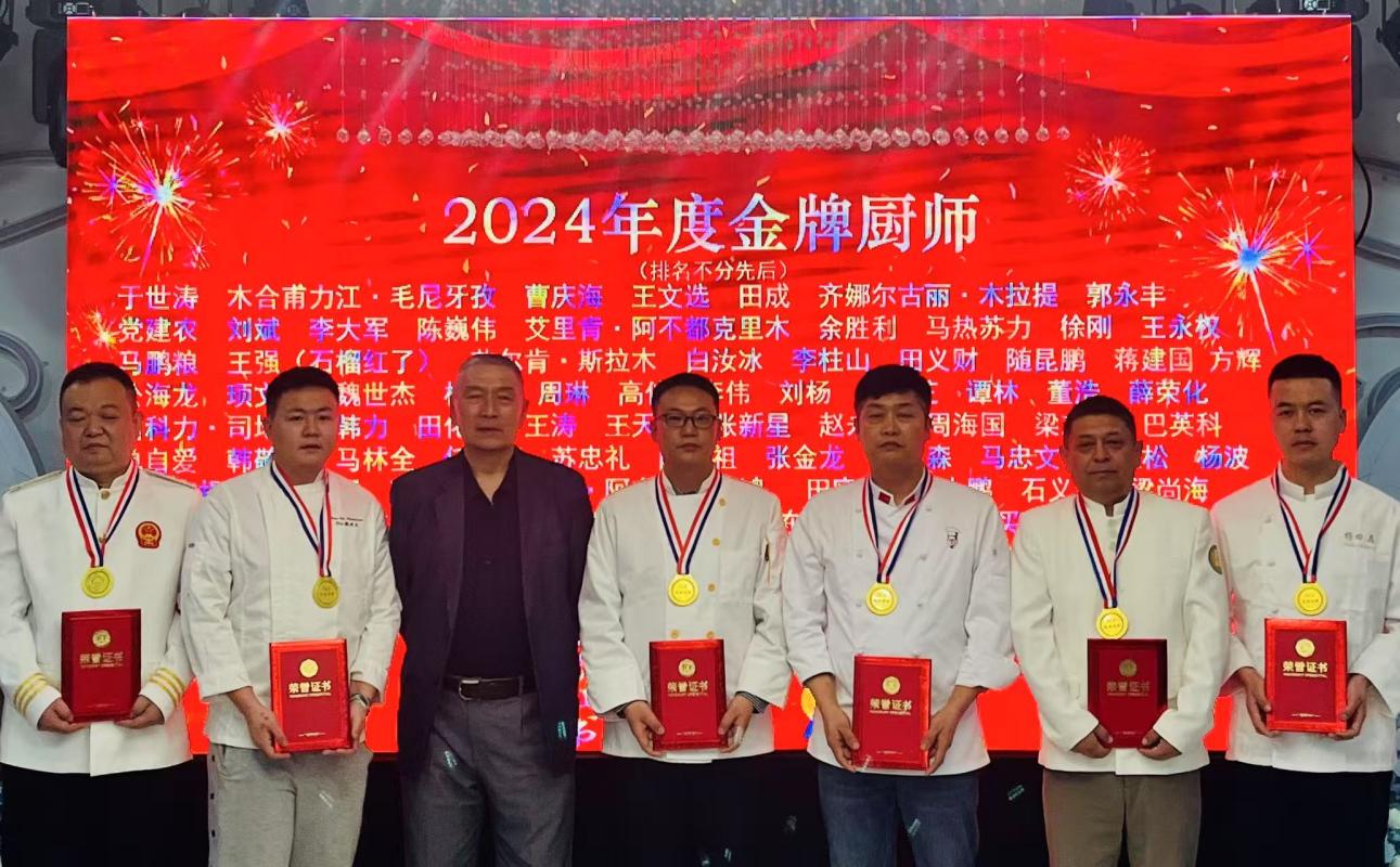 此外,学院教师王强老师获评“2024年度烹饪技艺传承奖”,成为全疆获此殊荣的行业代表之一。王强老师长期致力于新疆传统烹饪技艺的挖掘与传承,在教学中融入地域饮食文化特色,指导学生复原并创新多道经典民族菜肴,为保护新疆非遗美食文化作出重要贡献。同时张金龙、席雨两位教师凭借精湛的烹饪技艺和丰富的教学经验,从全疆众多优秀从业者中脱颖而出,荣获“2024年度金牌厨师”称号。两位教师的成就不仅体现了个人的专业造诣,更展现了学院师资队伍的高水平与教学成果的丰硕。