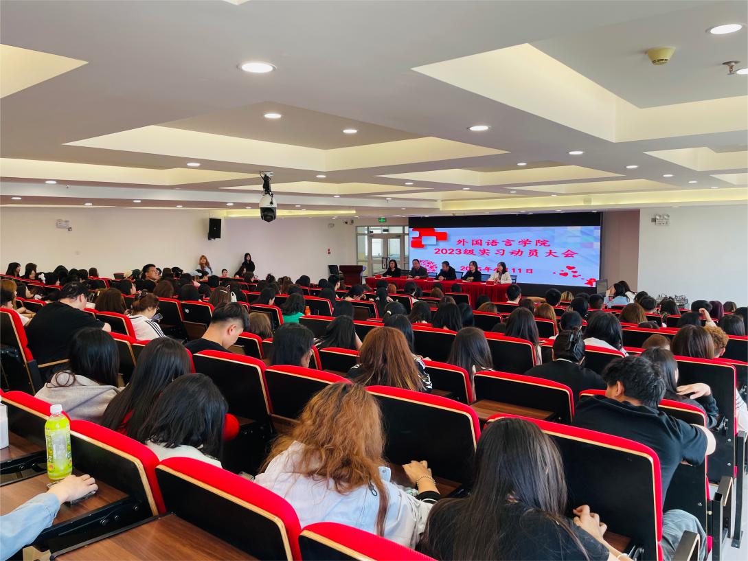 针对2026届学生举办的实习动员大会同步启动。专业英语教研室主任崔斌老师从职业规划、实习安全、技能储备等方面进行动员,旅游英语2203班魏钰莹同学作为毕业生代表,结合自身实习经历,为学弟学妹传授岗位适应与职场沟通的实用技巧。党总支书记阮涛在总结讲话中提出“全员参与、全程指导、全方位服务”的就业工作总要求。