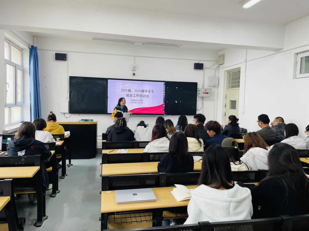 为深入贯彻落实国家“稳就业”“保就业”决策部署,切实提升毕业生就业竞争力,外国语言学院于近期开展了一系列促就业专项活动,通过表彰先进、动员指导、资源对接、技能培训等多元化举措,为2025届、2026届毕业生就业工作按下“加速键”和“启动键”。