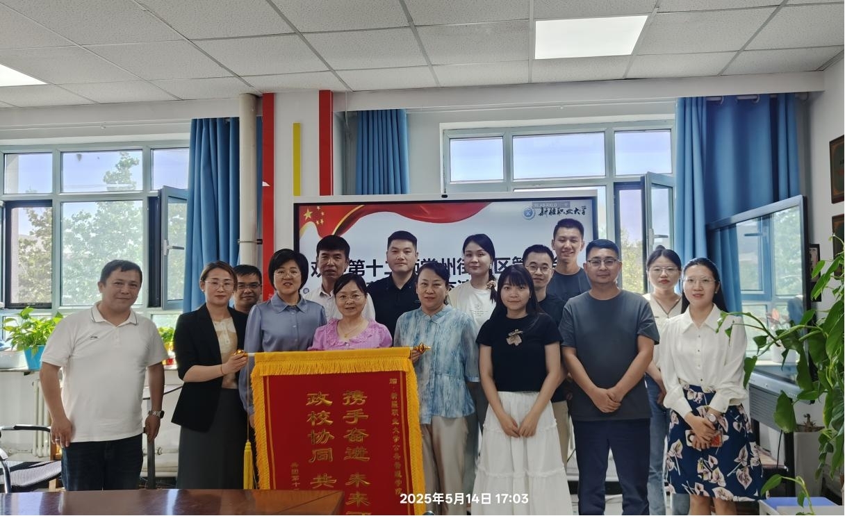 会议结束之际,第十二师常州街管委会为公共管理学院赠送“政校协同 共赴新程 携手奋进 未来可期”锦旗,对公共管理学院2024年度参与社区服务所做工作予以感谢与肯定。