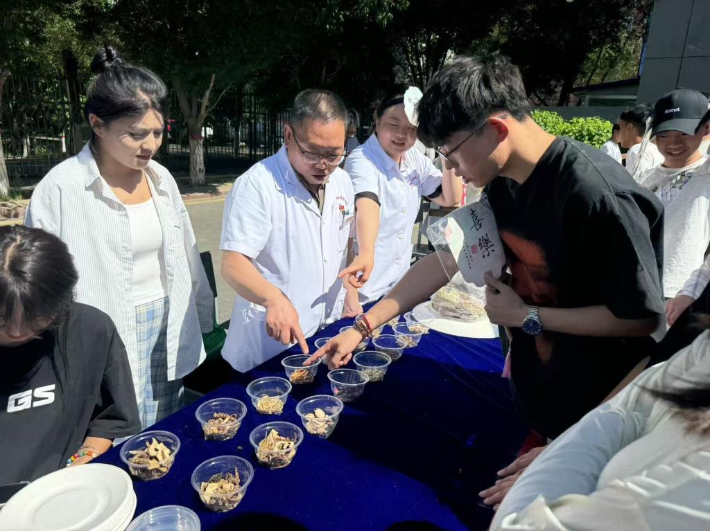 邀请自治区科普专家郭蕾(现任自治区中西医结合医院友谊路社区卫生服务中心副主任、支部书记),开展中医药特色茶饮品鉴、香包制作、认用中药绘画梦想等互动活动。提高师生的对于“药借食力,食助药威”的中华养生学问的认识,领略中医药膳独特的养生智慧。