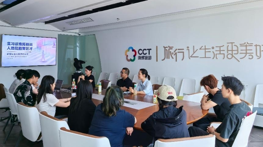 随后,旅游学院调研团队前往新疆康辉大自然国际旅行社、新疆康泰国际旅行社及新疆北国之春国际旅行社。三家旅行社共吸纳32名实习生,企业负责人高度评价学生专业素养,特别指出康辉旅行社实习生在产品设计、市场营销等新业态中展现出较强适应力。企业负责人说,当前旅行社行业正面临产品定制化、营销数字化转型升级,急需具备跨领域实践能力的复合型人才。