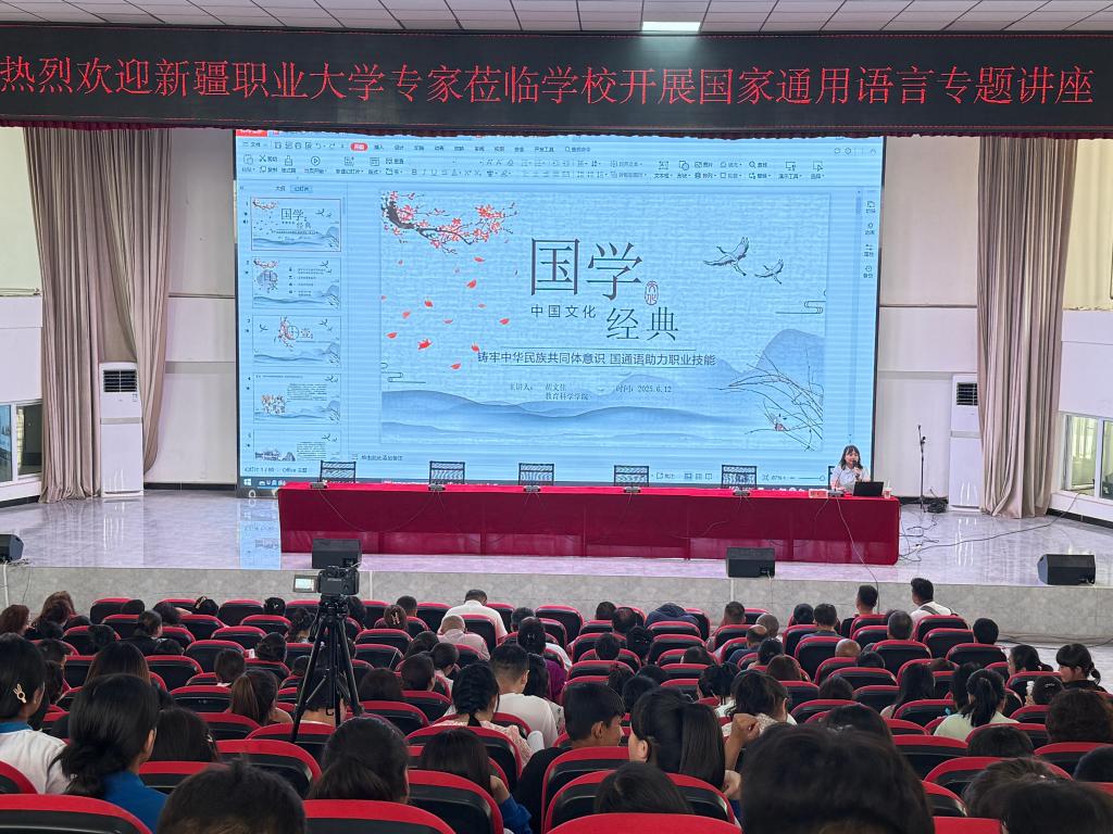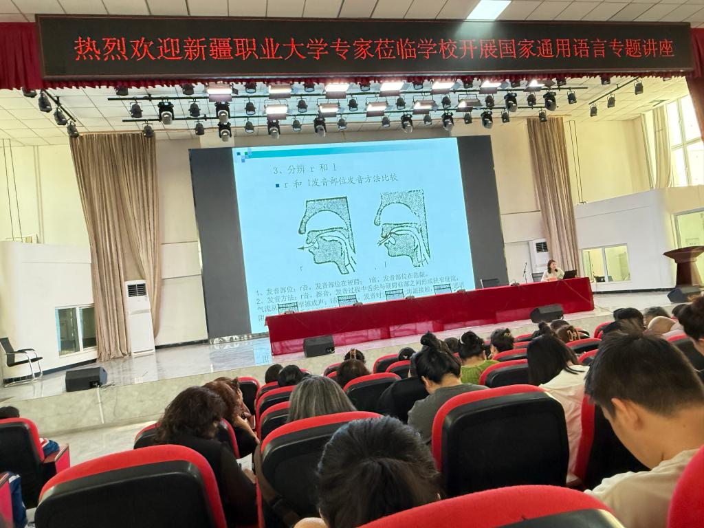为深入贯彻落实国家通用语言文字工作方针政策,推动南疆四地州职业教育高质量发展,助力提升帮扶中职院校师生国家通用语言文字素养,6月12日,我校教育科学学院国家级普通话测试员胡文佳、钟海翔两位老师赴喀什中等职业技术学校开展了精彩纷呈的讲座汇报活动,为喀什中等职业技术学校师生带来了一场知识的盛宴。