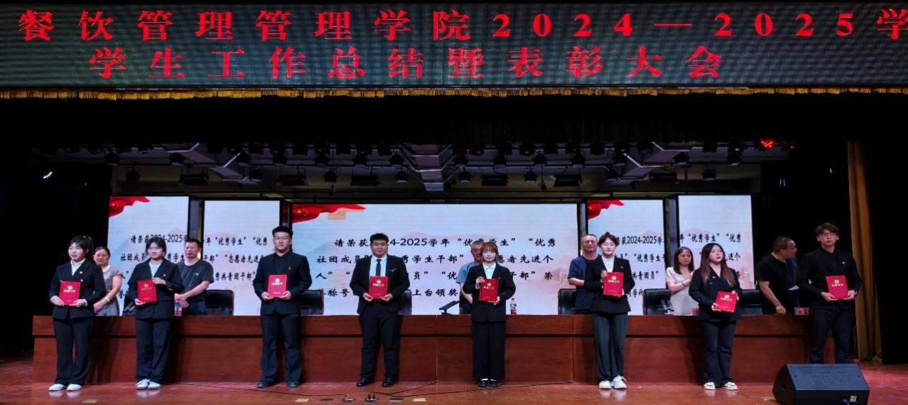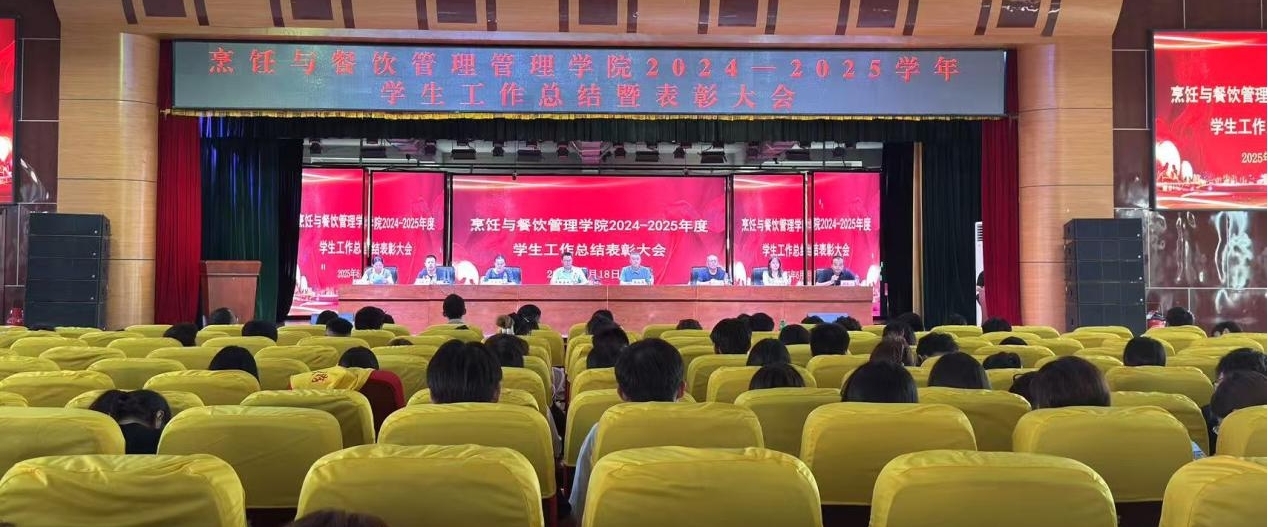 为总结过去一学年我院学生工作成果,表彰先进典型,激励全院学子奋发向上,6月18日晚上,我校烹饪与餐饮管理学院2024-2025学年学生工作总结表彰大会在综合楼四楼大礼堂隆重举行。学院领导华定存书记、张金龙副院长、胡风林老师、于佳佳老师、冯云龙老师、万玉炜老师、董文舒老师、周永启老师以及全体师生齐聚一堂,共同见证荣耀时刻。大会由周永启老师主持。