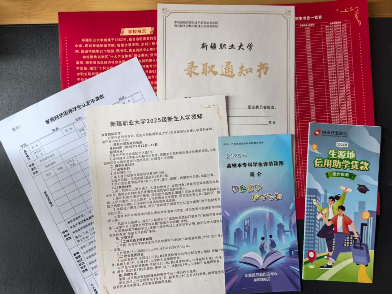 近日,我校2025级新生录取通知书正式踏上奔赴全国各地的旅程。首批通知书已向山东、天津、吉林、江苏、陕西、江西等省份及新疆三校生普通类、单考单招、直升专的新生发出,标志着又一批学子即将在新疆职业大学开启人生新篇章。