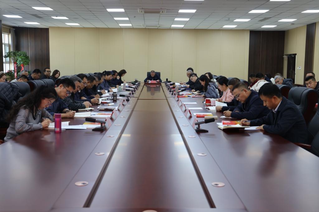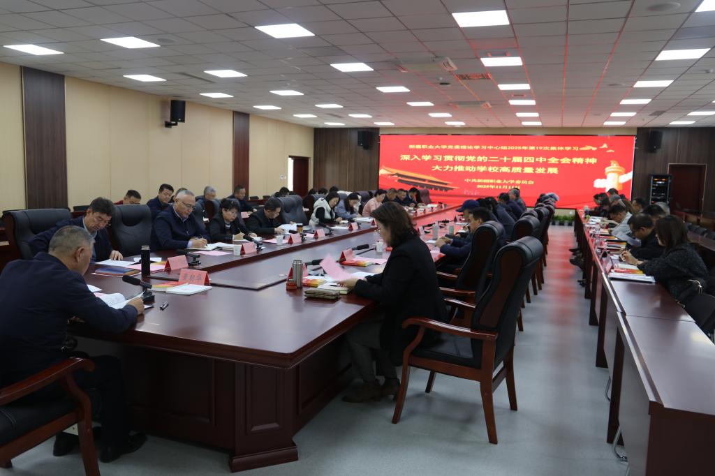 11月11日,我校党委召开2025年度第19次党委理论学习中心组集体学习会议。会议专题学习了习近平关于《中共中央关于制定国民经济和社会发展第十五个五年规划的建议》的说明,中共中央关于制定国民经济和社会发展第十五个五年规划的建议,中国共产党第二十届中央委员会第四次全体会议公报。围绕“深入学习贯彻党的二十届四中全会精神,大力推动学校高质量发展”专题开展交流研讨。校党委书记黄朝华主持会议并讲话,校党委常委、副处级以上干部参加了会议。党委班子成员黄朝华、阿不力克木·阿不德卡德尔,处级干部高鹏、张新艳、谢辉,结合工作实际,作了交流研讨。