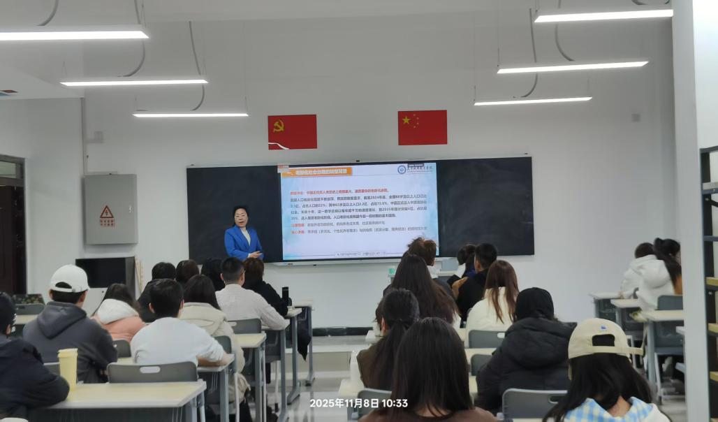 讲座中,阮利副教授凭借其严谨的研究态度和生动的表达,结合我国当前养老服务事业的发展趋势,明确指出“社区+物业+养老”模式是我国应对人口老龄化严峻挑战的关键举措。她认为,“社区+物业+养老”协同开展养老服务能够有效弥补各自不足,实现互利共赢。阮教授深入浅出的讲解不仅帮助师生准确理解社会工作专业服务和智慧健康养老服务与管理专业在中国式现代化建设中的重要地位,也为学院教师提供了课题研究新思路。