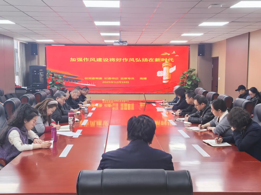 为深入贯彻习近平总书记关于加强党的作风建设的重要论述,以严实作风护航学校升本攻坚核心任务。12月16日,我校纪委组织开展“加强作风建设,将好作风弘扬在新时代”专题培训。校党委常委、纪委书记高靖主持会议并授课,机关党委、各党总支、直属党支部负责人全员参训,以思想作风、学习作风、工作作风、领导作风、生活作风“五个作风”同步提升,凝聚升本发展合力。