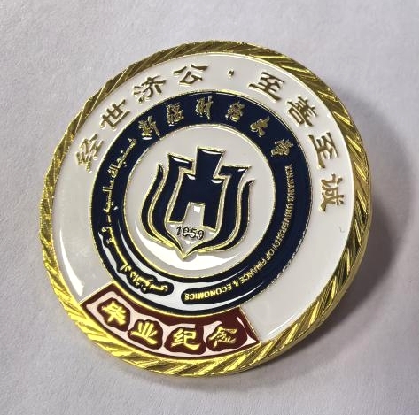 (新疆财经大学毕业纪念章与吉祥物“财宝儿”)