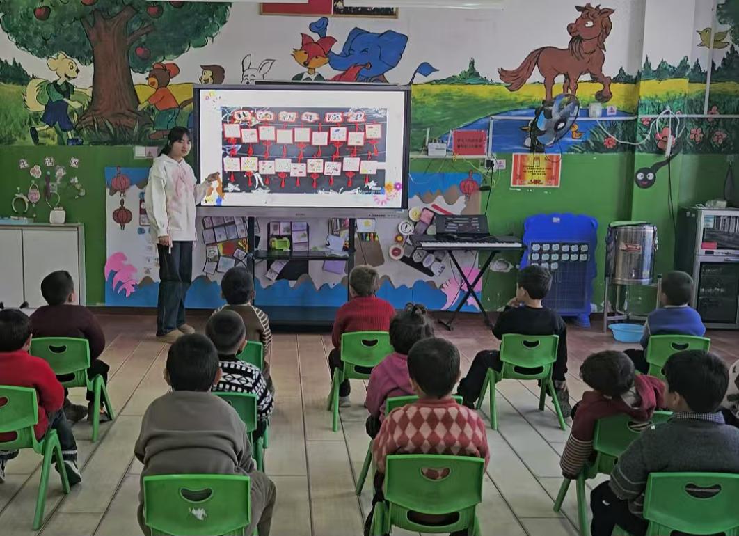 (实习支教学生迪丽娜尔·吾布力阿西木同学在给中班幼儿讲授节庆成语)