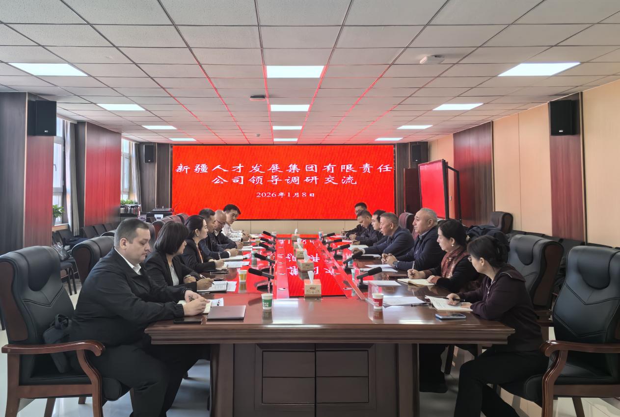 1月8日,新疆人才发展集团有限责任公司党委副书记、董事、总经理张硕一行到访我校调研座谈,实地考察新校区建设情况及培训条件,并召开座谈会。