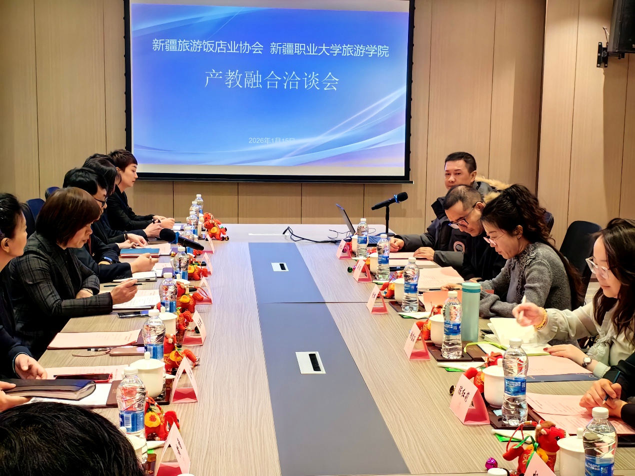 非遗体验中心合作洽谈结束后,学院一行前往伊力特酒店,与新疆旅游饭店业协会秘书长孙莉及乌鲁木齐多家知名酒店相关负责人召开产教融合专题洽谈会。会上,学院介绍了旅游管理、酒店管理等专业的人才培养方案、师资力量及学生实习就业情况,企业方代表则结合行业发展趋势,提出了对高素质旅游酒店专业人才的需求标准。