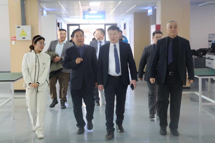 策·普日布苏荣校长一行在校党委常委、副校长肖克拉提·米尔扎陪同下,先后前往学生食堂、体育馆、商业综合体、学生宿舍、实训基地等进行参观,全方位感受我校的办学环境。