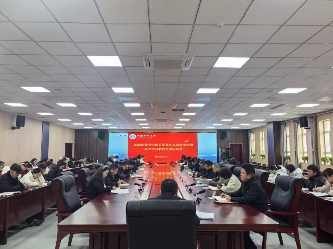 为深入学习贯彻习近平新时代中国特色社会主义思想,全面落实党的二十届四中全会精神与新时代党的治疆方略,我校机关党委紧扣强思想、转作风、提效能、促服务主线,扎实开展2026年春季学期集中学习教育,以严实举措推动机关党员干部先学一步、学深一层,为新学期工作开局起步筑牢思想根基。