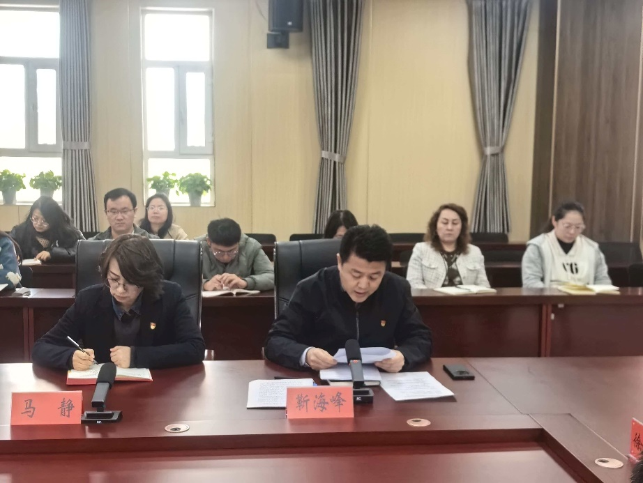 (机关党委副书记兼组织委员、组织部副部长靳海峰同志领学文件)