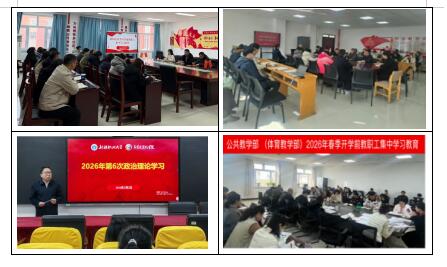 各部门、各学院围绕学习贯彻党的二十届四中全会精神、树立和践行正确政绩观、深化职业教育教学关键要素改革、对接自治区特色产业集群推动学校高质量发展等内容组织开展了形式多样的集中学习和讨论交流活动,凝聚了坚持立德树人、提升学校内涵式建设的广泛共识。