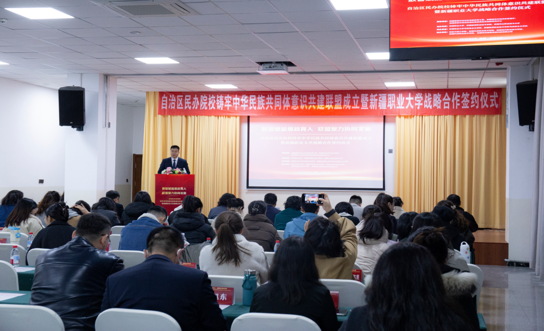 3月25日,自治区民办院校铸牢中华民族共同体意识共建联盟成立暨新疆职业大学战略合作签约仪式在新疆能源职业技术学院举行。我校马克思主义学院、自治区各民办院校、超星集团等校企合作单位齐聚一堂,共同见证联盟成立,共商新疆民办院校思政教育高质量发展路径,携手探索铸牢中华民族共同体意识教育新实践。