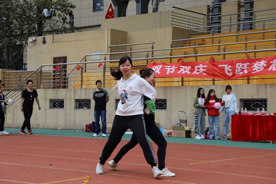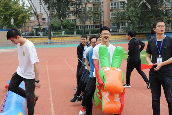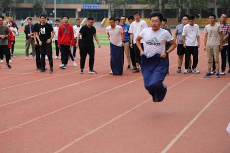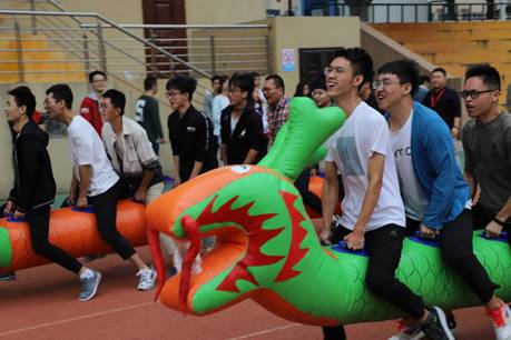 运动会的第一个项目是旱地龙舟,一共13个班,分成4组进行。最先出场的第一组同学,尽管对比赛规则不太熟悉,依然骑着龙舟,齐心协力一路冲向过了终点线。老师们也放下了昔日课堂上严肃的一面,热情地参与到活动中。活动中,男老师们为了防止女老师们因跟不上节奏而受伤,就让她们坐在龙舟上一路将她们抬到了终点线,这样的绅士风度又成为了比赛场上一道靓丽的风景线!