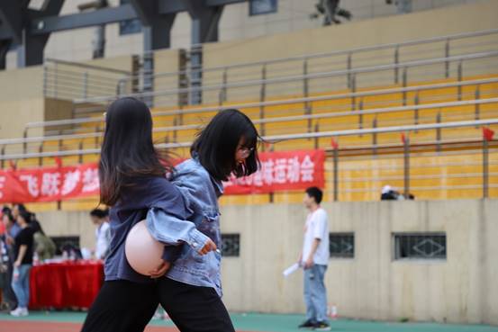 运动会的最后一个项目是夹球接力,参赛队伍十人分为5组,两两夹球进行迎面接力。此时,已经到了比赛的尾声,略显疲惫的同学们也还是兴致勃勃、欢欣鼓舞。